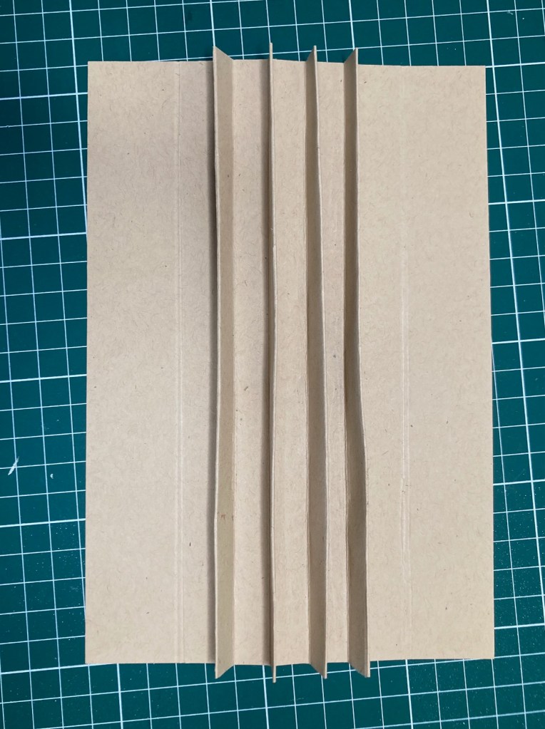 For my 4 hinge journal I started with a piece of card 9 1/2 x 8. This will fit the 3″ spine of my 8 1/2 x 6 3/4 Cover